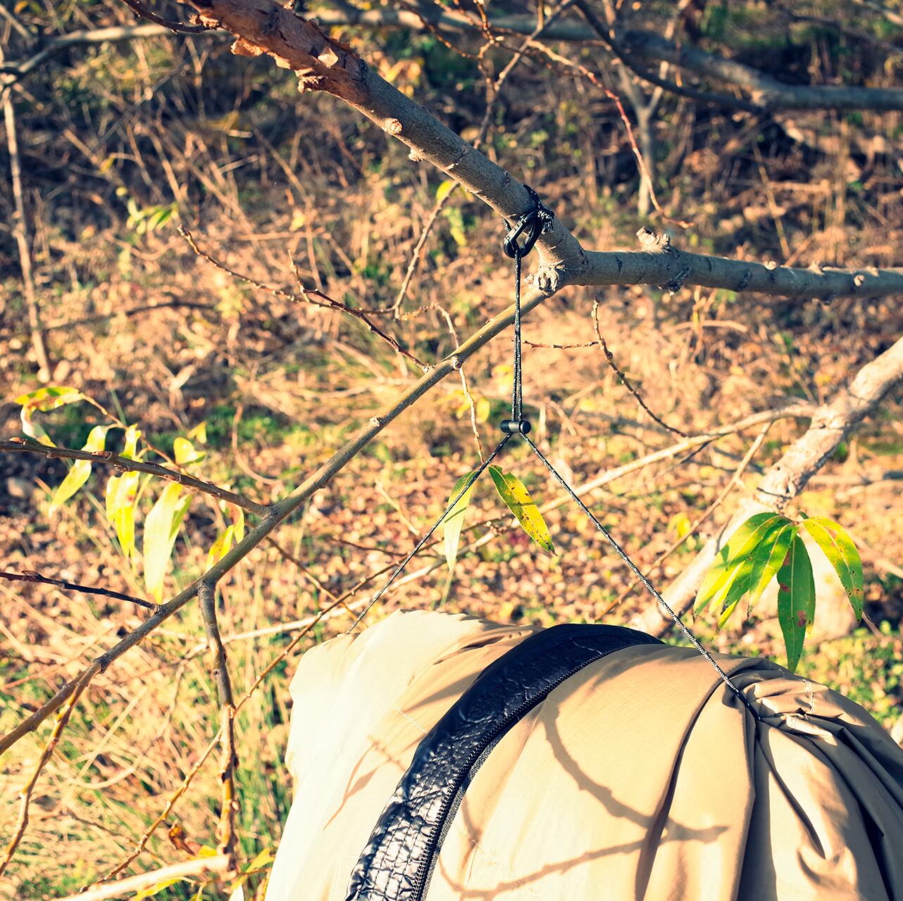 ドローコードを絞ることで風で飛ばされるリスクが軽減します。